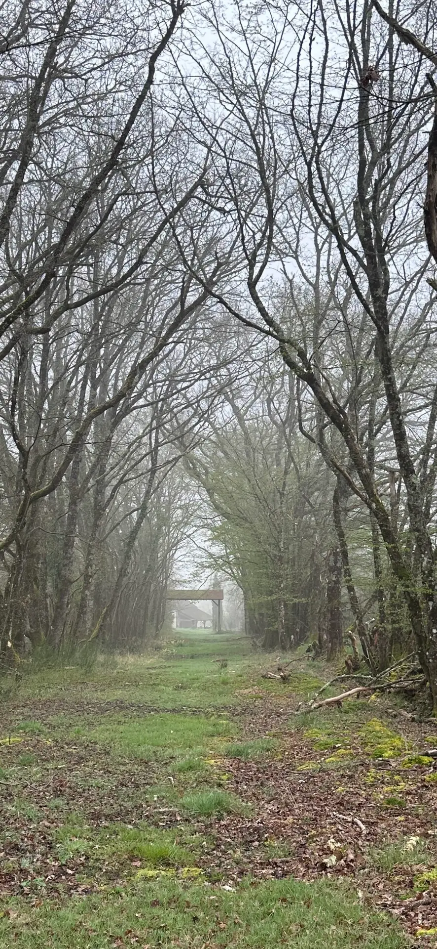 The full sweep of Forge — from the honey-stone buildings and courtyards to the sweeping lawns, ancient woodland, and private parkland stretching to the horizon. Explore the Forge in France estate.
